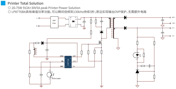 在現(xiàn)代辦公環(huán)境中,打印機(jī)作為不可或缺的設(shè)備之一,其性能和穩(wěn)定性對(duì)于提高工作效率至關(guān)重要。打印機(jī)的電源管理方案是確保其穩(wěn)定運(yùn)行的關(guān)鍵因素之一。本文將探討兩款適用于打印機(jī)的電源管理方案:LP8776BA和LP8728BCP,它們分別適用于20~75W和48W的輸出功率。