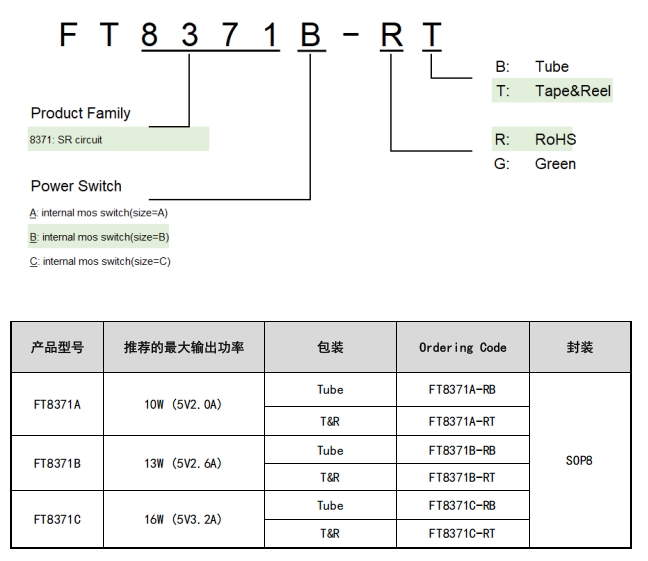| FT8371A | 10W (5V2.0A) | SOP8 | FT8371A-RB | FT8371A-RT |