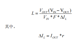 電感L1的選擇對(duì)于電源系統(tǒng)的性能至關(guān)重要。在降壓型拓?fù)潆娐分校姼兄档倪x擇通常在最惡劣條件下進(jìn)行計(jì)算,即使用最高輸入電壓值,在最大負(fù)載條件下,電路工作在CCM(連續(xù)導(dǎo)通模式)并且達(dá)到最高工作頻率。推薦的電感電流紋波系數(shù)r值不小于0.25。根據(jù)電感公式,可以計(jì)算出電感值L: