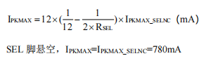 SEL腳外接電阻RSEL,可調最大峰值電流IPKMAX。公式如下: