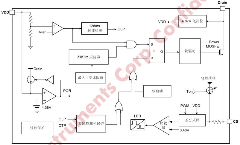 | 8 | Drain | P | 內(nèi)部高壓MOSFET漏極 |