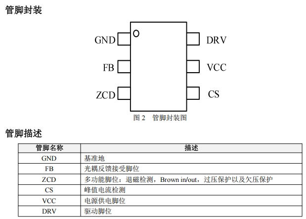 1-GND 2-FB 3-ZCD 4-CS 5-VCC 6-DRV