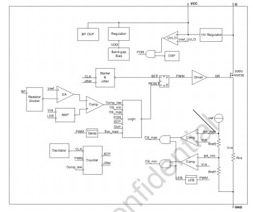 | OVP | VCC>8.6V | 關(guān)斷MOSFET,旁路1mA電流 |