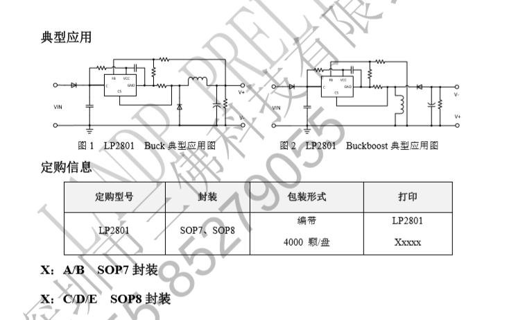 LP2801B為非隔離電源芯片,輸出電壓可調,電流150MA,封裝:SOP7