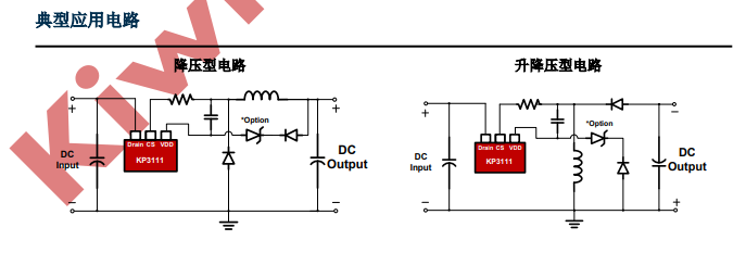 KP3111 是一款非隔離型、高集成度且低成本的PWM功率開(kāi)關(guān),適用于降壓型和升降壓型電路。