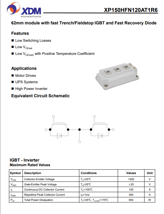 XP150HFN120AT1R6 芯達(dá)茂 國產(chǎn)IGBT功率模塊150A 1200V 62mm